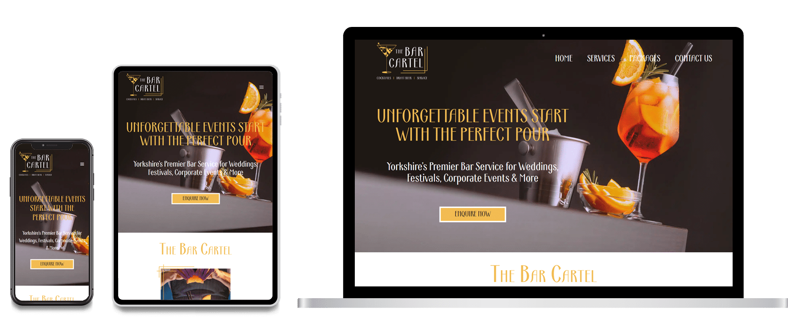 Our goal was to build a contemporary, visually striking website that truly reflects The Bar Cartel's brand. The design balances elegance and professionalism, tailored to captivate their ideal audience. Throughout development, we prioritised functionality and user experience, ensuring the site is both intuitive and easy to explore. With a responsive design in place, we ensured flawless performance across all devices, offering a smooth browsing experience for every user, from desktop to mobile.