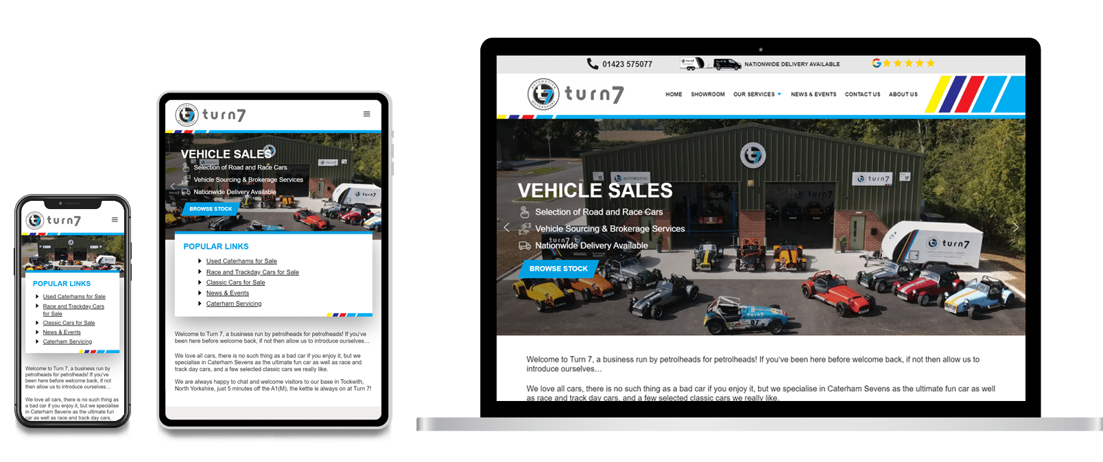 To showcase Turn-7's impressive inventory, we created a custom-built car section. This feature allows them to display their current stock with detailed descriptions, high-quality images and specifications.